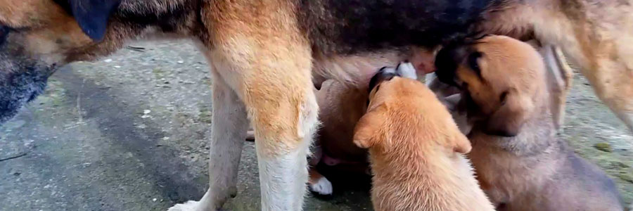 Footage of a female dog giving milk to her babies